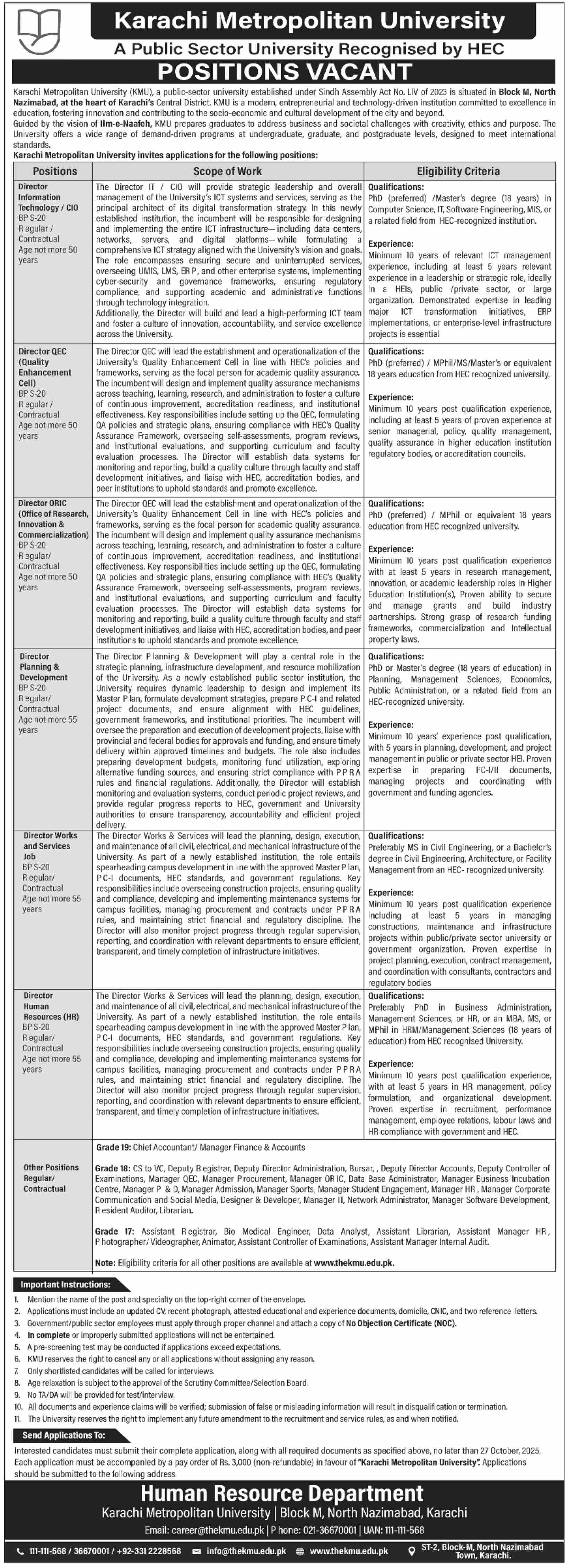 Jobs in Karachi Metropolitan University