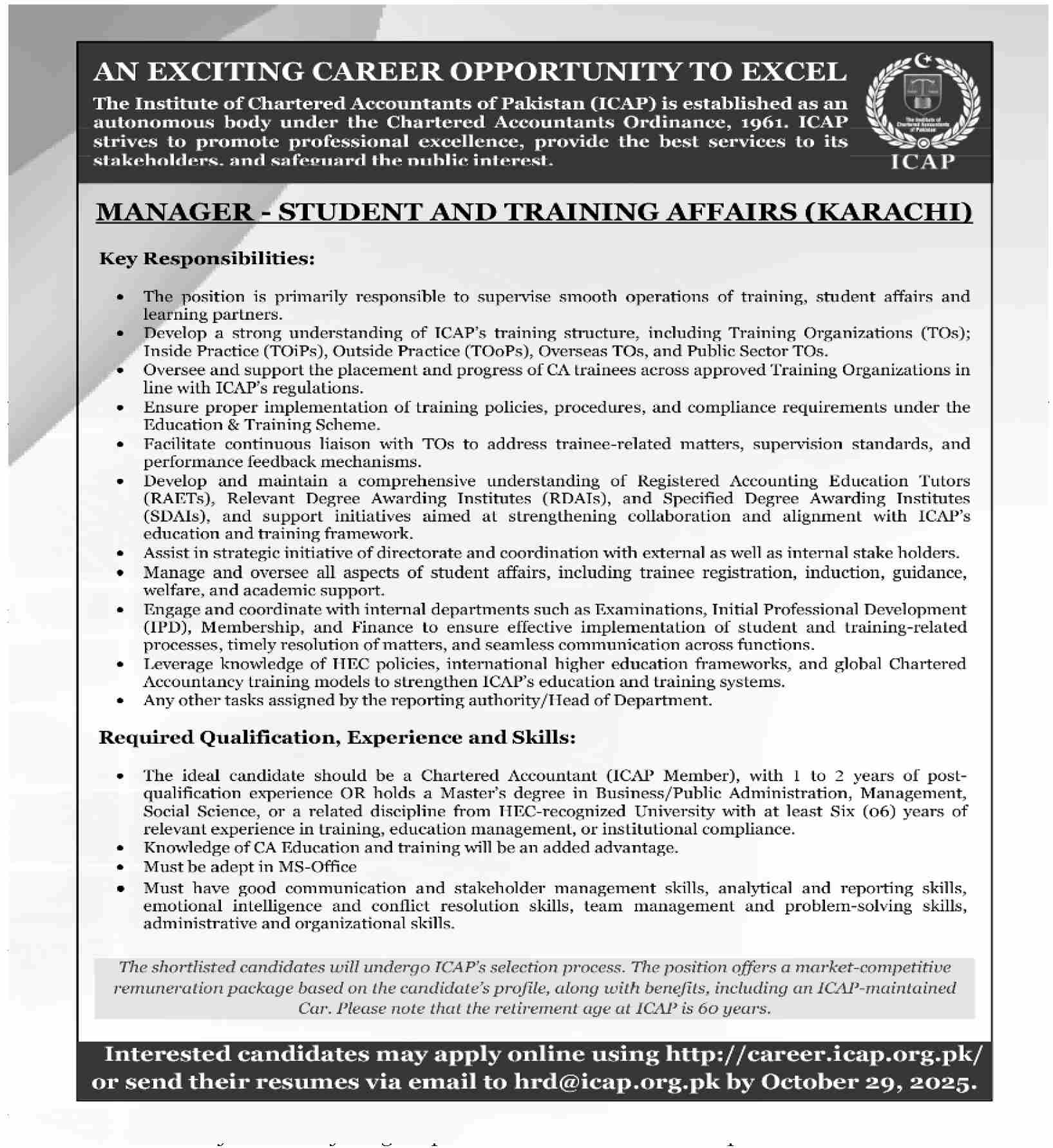 Jobs in ICAP Karachi