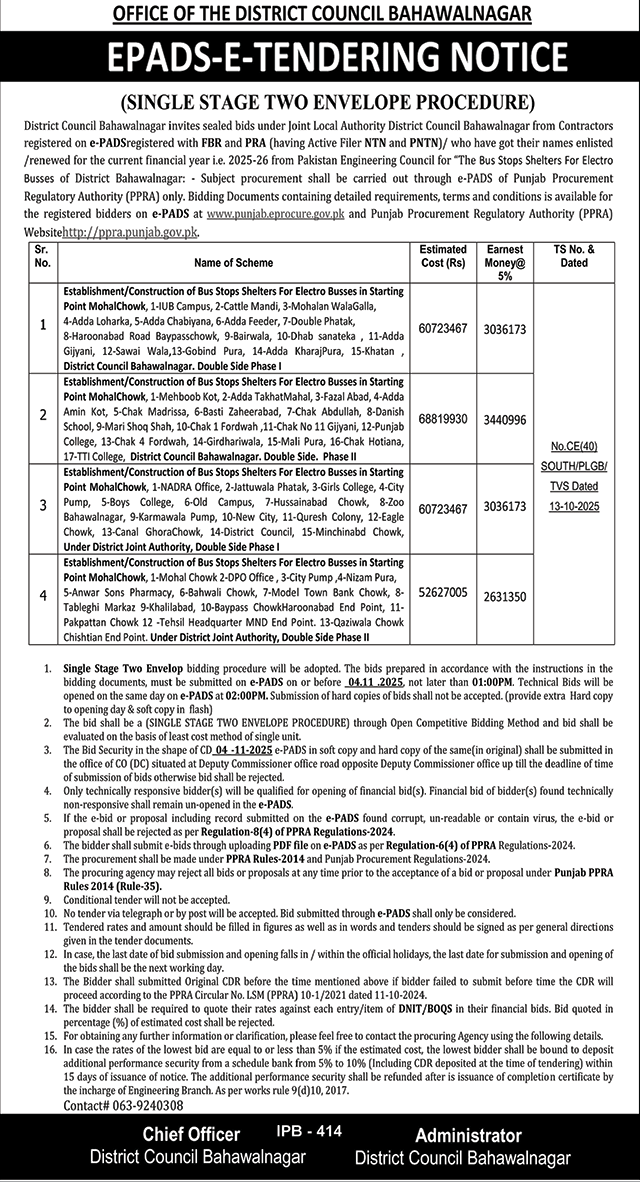 District Council Bhawalangar Tender Notice