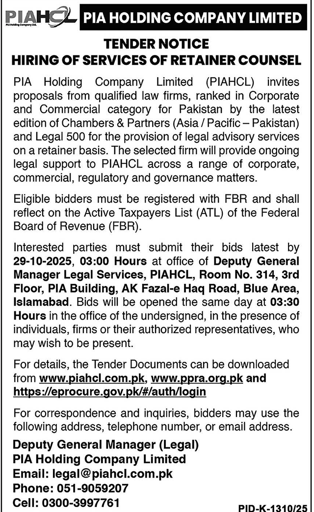 Sui Northern Gas Company Limited Lahore Tender Notice