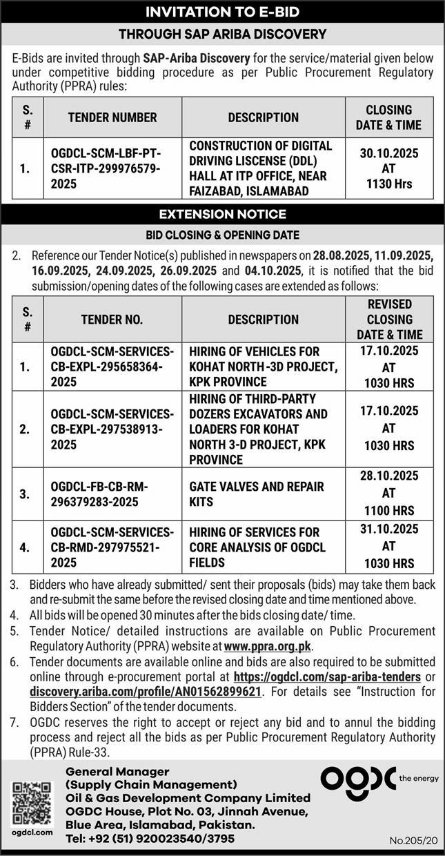 Oil & Gas Development Company Limited Islamabad Tender Notice