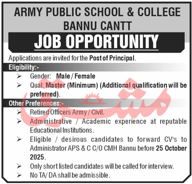 Jobs in Army Public School & College Bannu