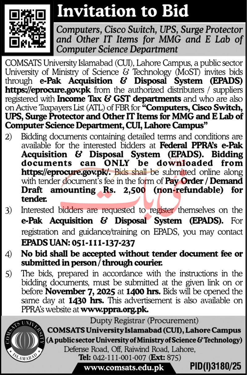 Sui Northern Gas Company Limited Lahore Tender Notice