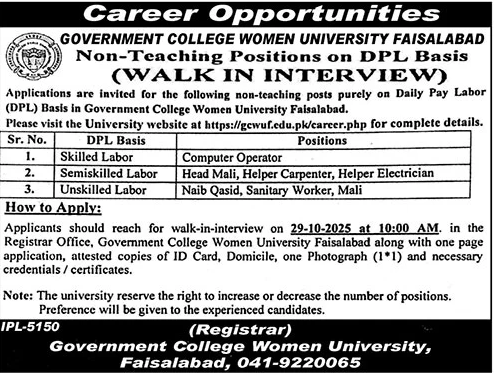 Jobs in Government College Women University Faisalabad