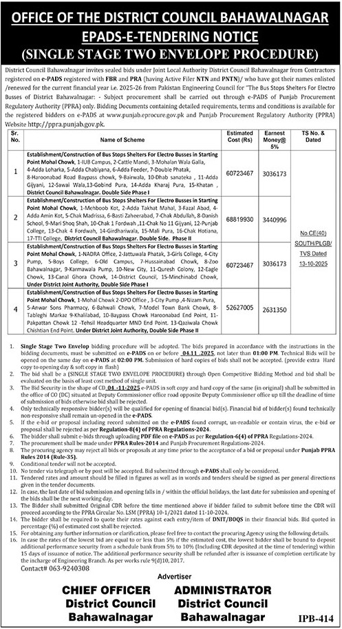 District Council Bahwalagar Tender Notice | IndoPakWork
