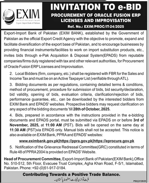 Oil & Gas Development Company Limited Islamabad Tender Notice