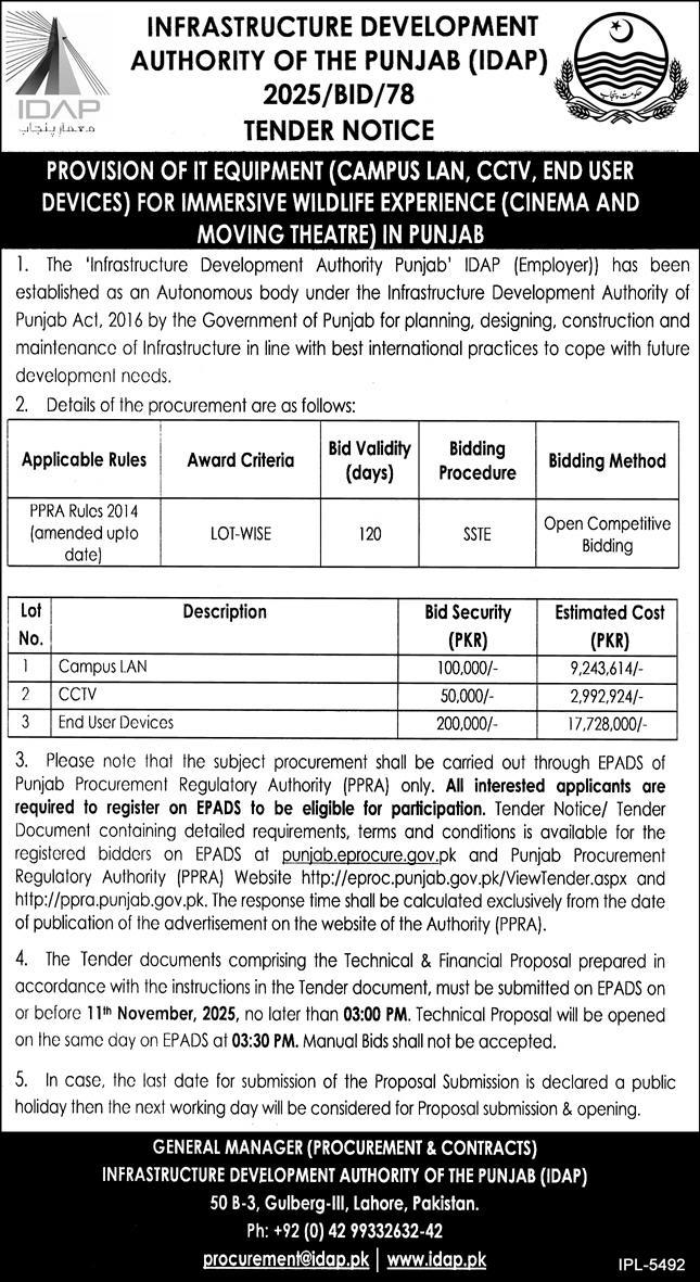 Infrastructure Development Lahore Tender Notice