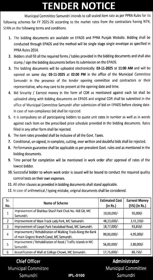 LG&DC Civil Division Sahiwal, Okara Tender Notice