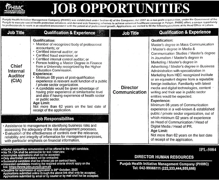 Jobs in Punjab Health Initiative Management Company Lahore