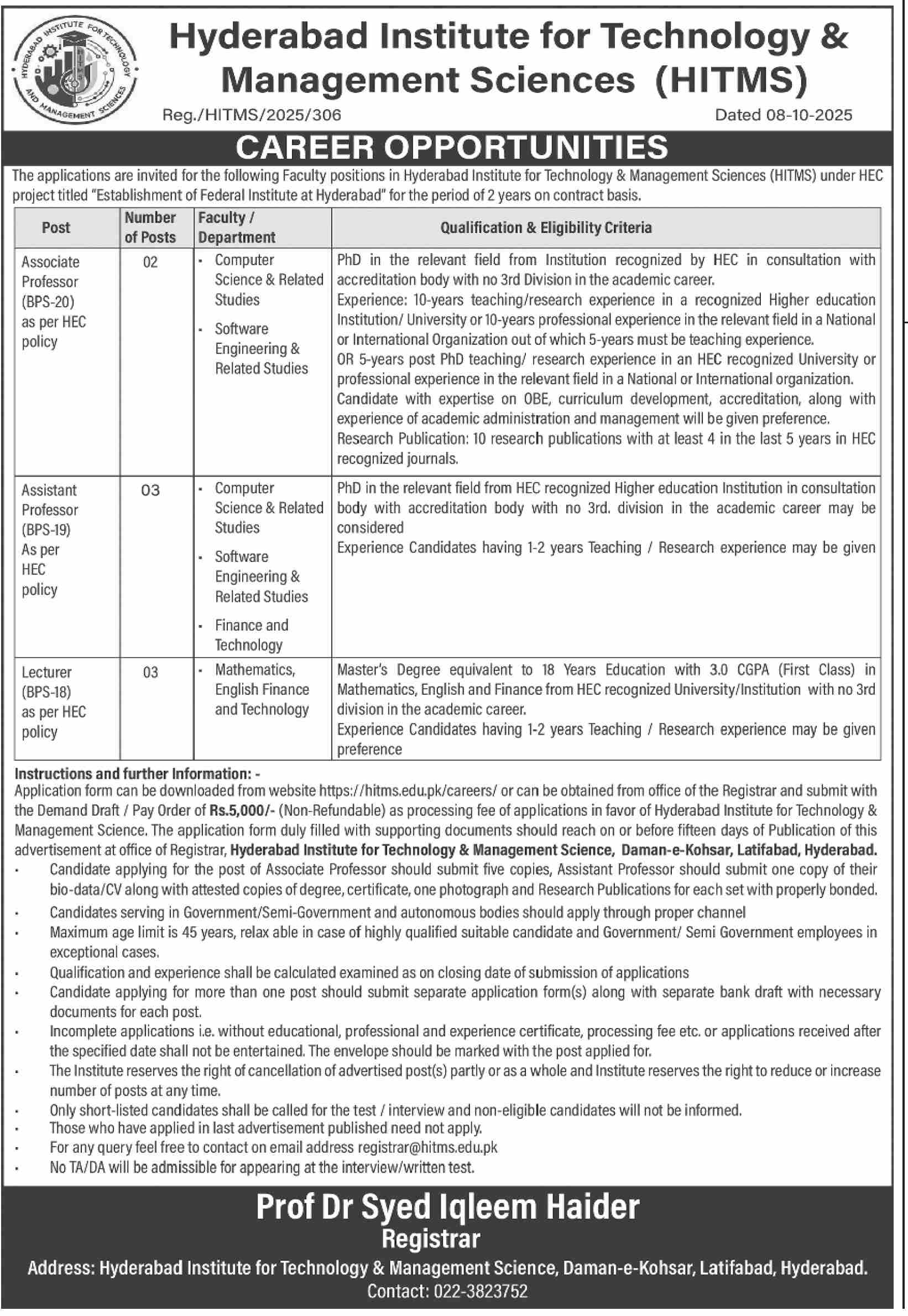 Hyderabad Institute of Technology & Management Sciences Jobs