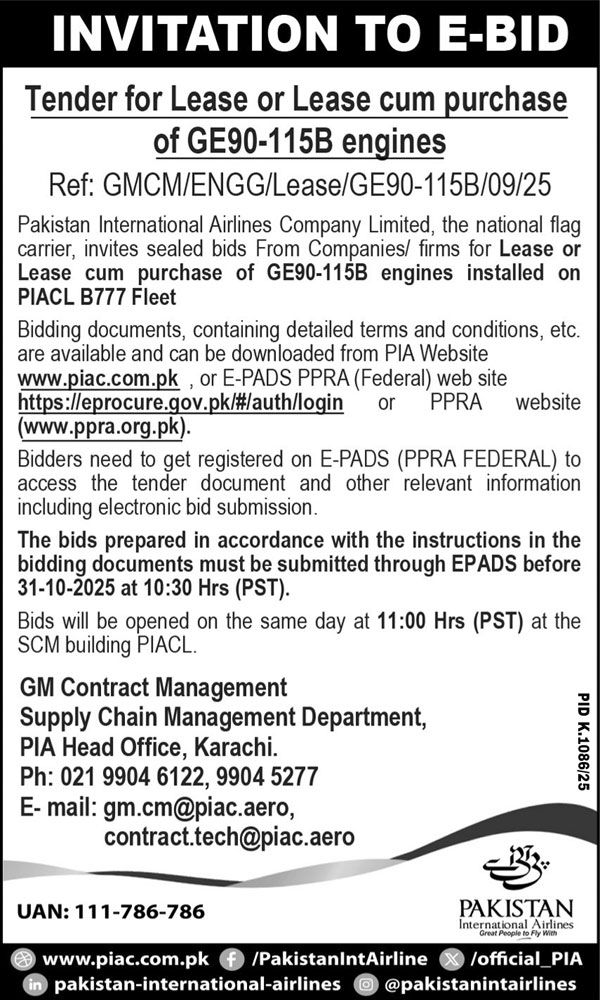 Pakistan International Airlines Company Limited Karachi Tender Notice | IndoPakWork