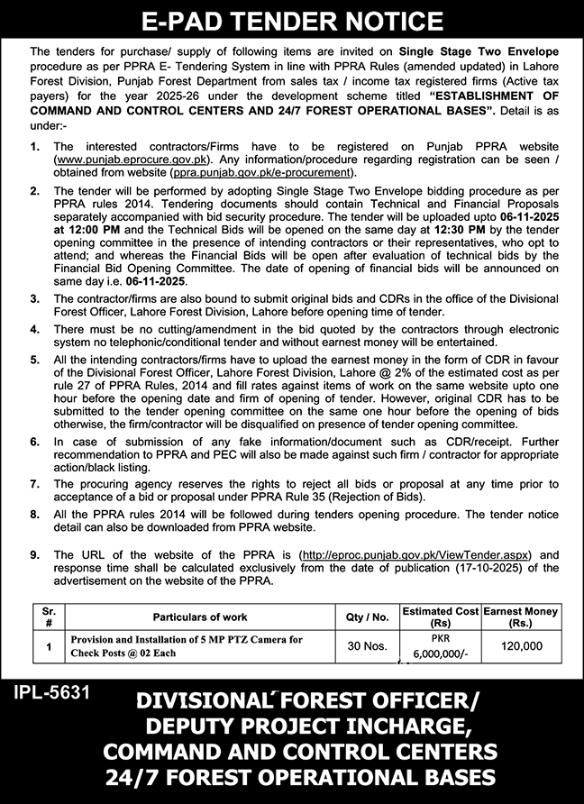 Public Sector Organization Lahore Tender Notice