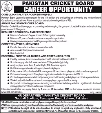 Pakistan Cricket Board Lahore Jobs