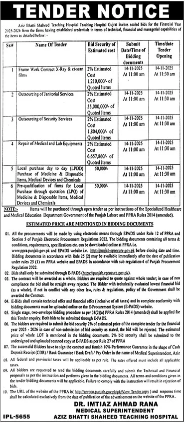 DHQ Teaching Hospital Tender Notice | IndoPakWork