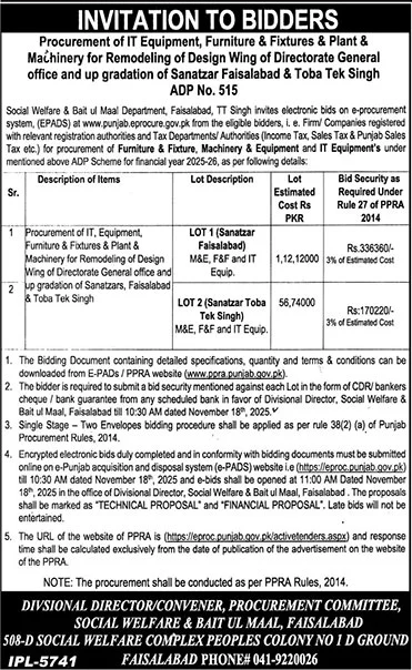 Social Welfare & Bait ul Maal Faisalabad Tender Notice | IndoPakWork