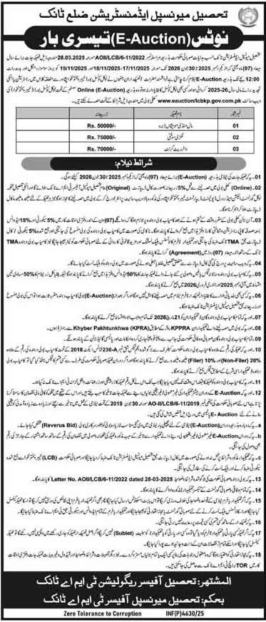 Tehsil Municipal Administration Tank Tender Notice | IndoPakWork