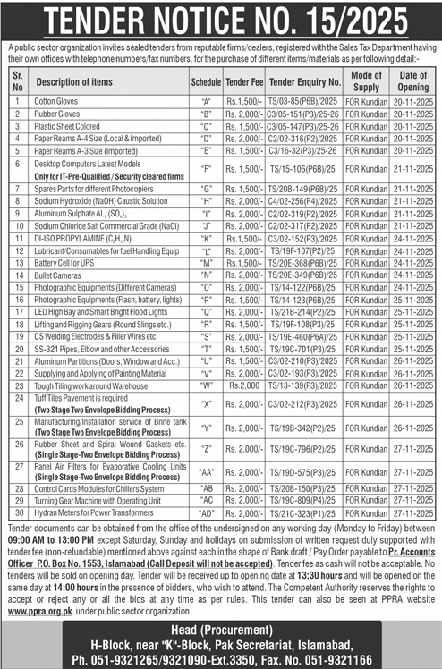 Public Sector Organization Islamabad Tender Notice | IndoPakWork