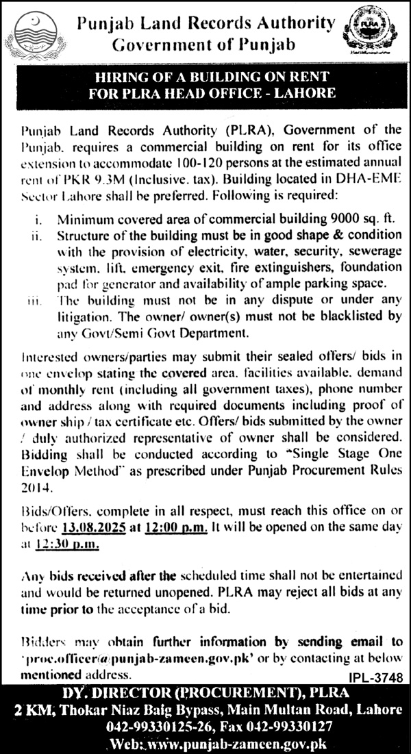 State Life Insurance Corporation of Pakistan Islamabad Tender Notice