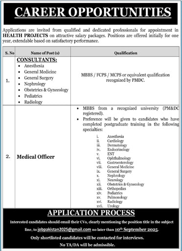 Medical Jobs in Public Sector Organization