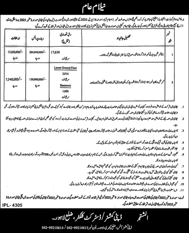 District Court Lahore Tender Notice