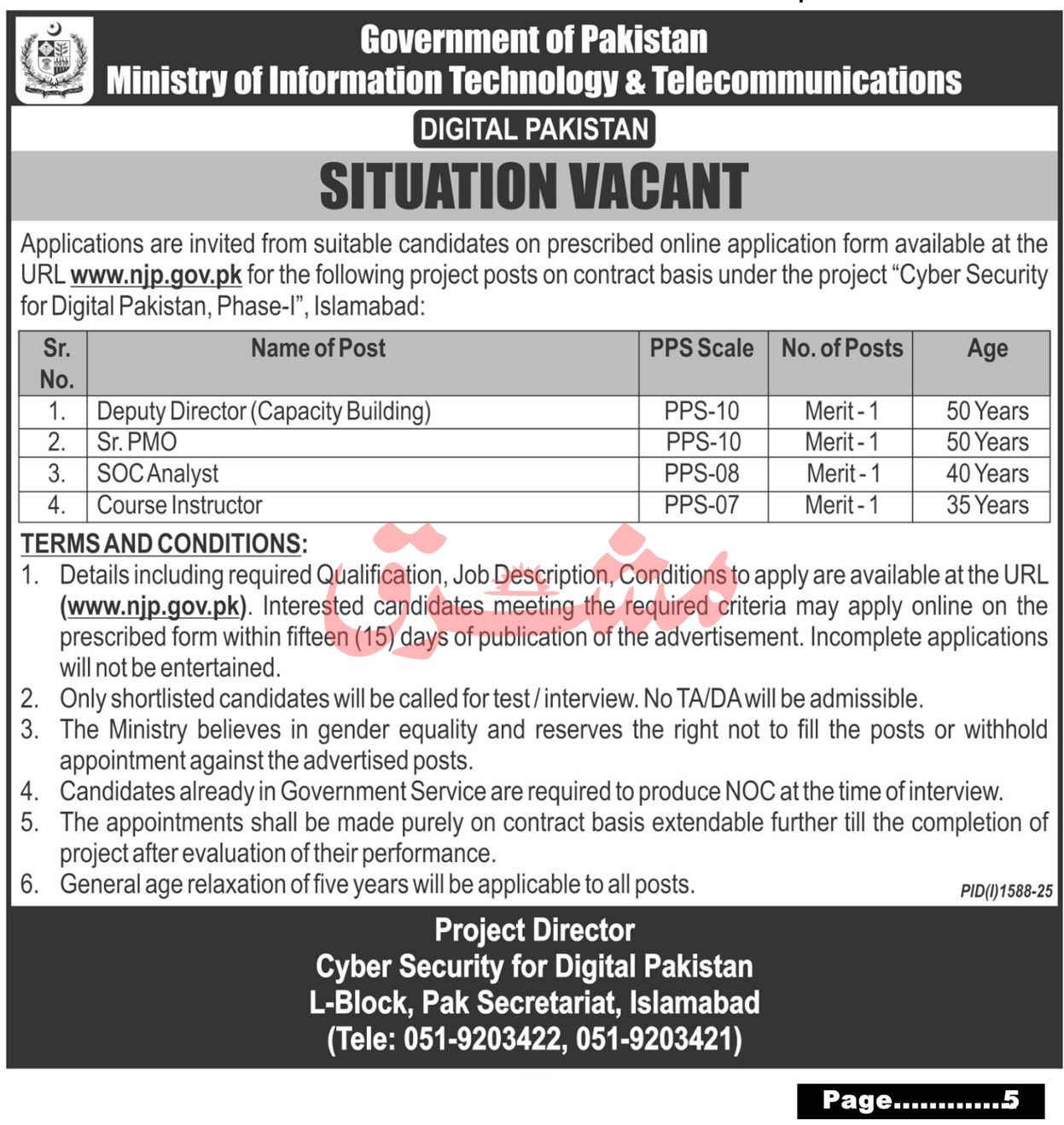 Jobs in Ministry of Information Technology & Telecommunication Islamabad