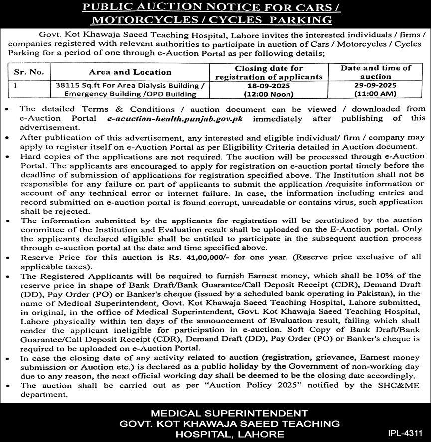 Govt Kot Khawaja Saeed Teaching Hospital Lahore Tender Notice