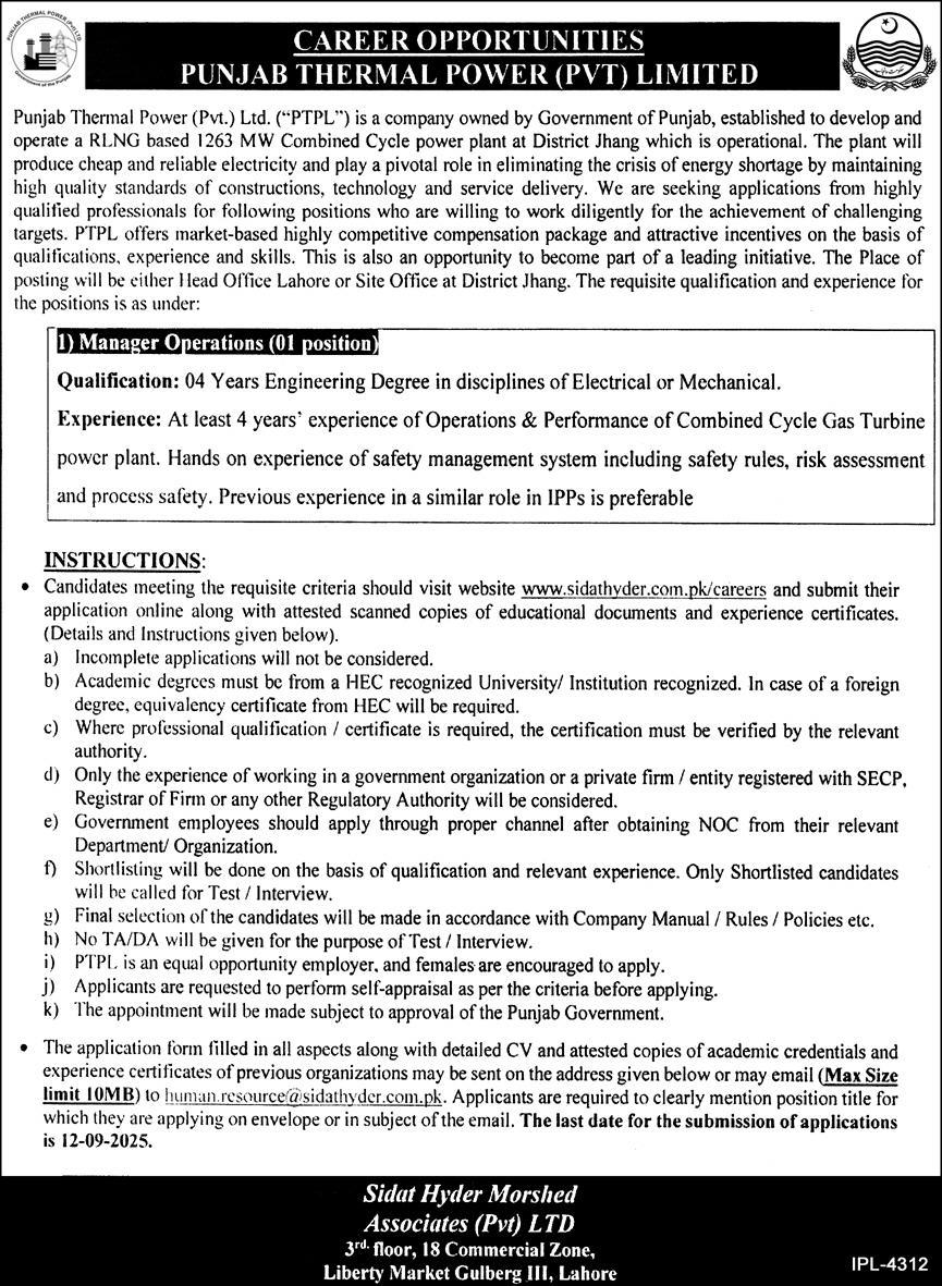 Jobs in Punjab Thermal Power Private Limited Lahore