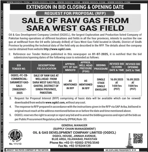 Oil & Gas Development Company Limited Islamabad Tender Notice-1