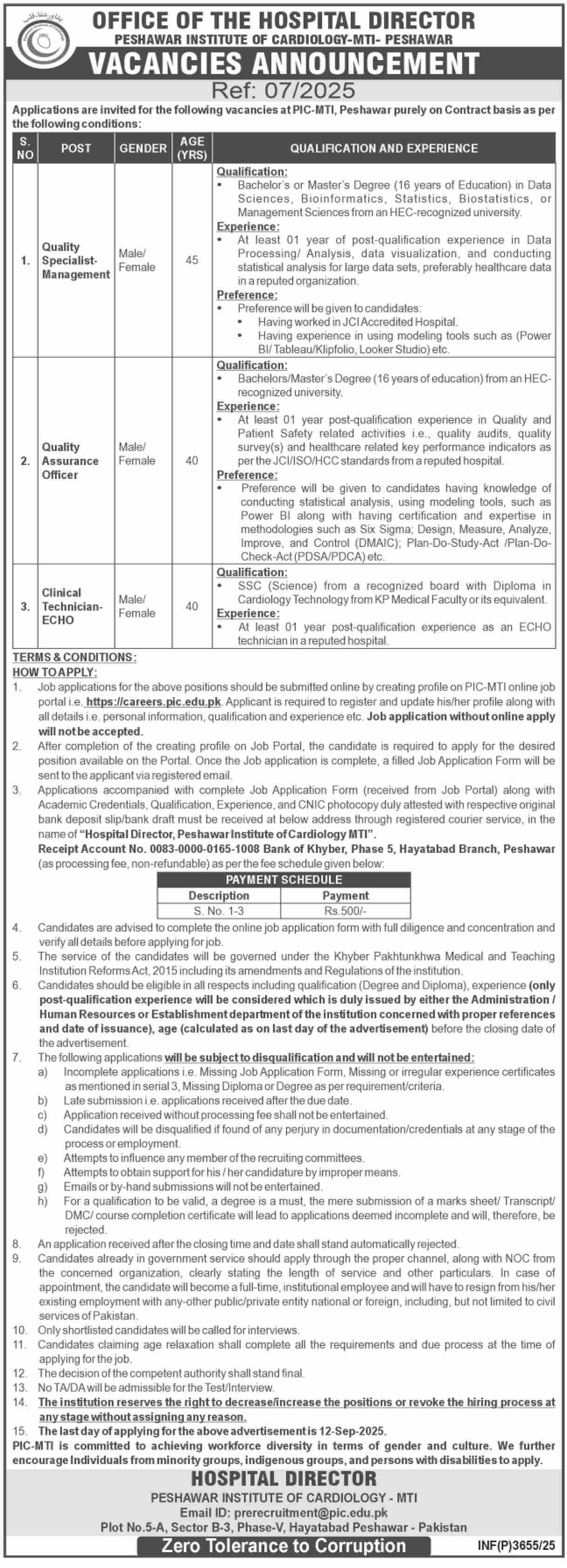 Jobs in Peshawar Institute of Cardiology Peshawar