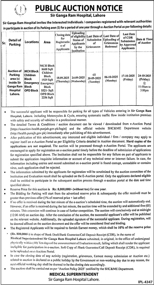Sir Ganga Ram Hospital Lahore Tender Notice