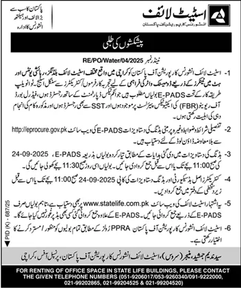 State Life Insurance Corporation of Pakistan Karachi Tender Notice-1
