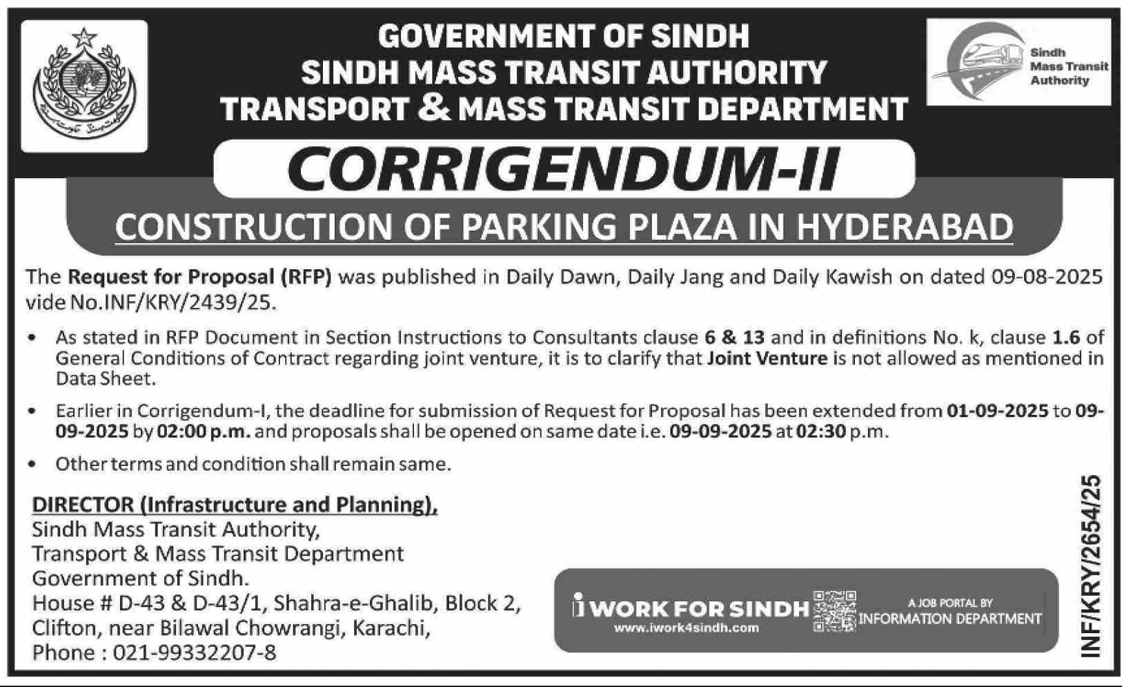 Sindh Mass Transit Authority Transport & Mass Transit Department Tender Notice