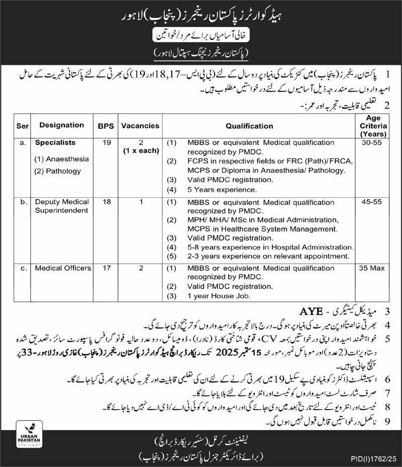 Jobs in Pakistan Rangers Lahore