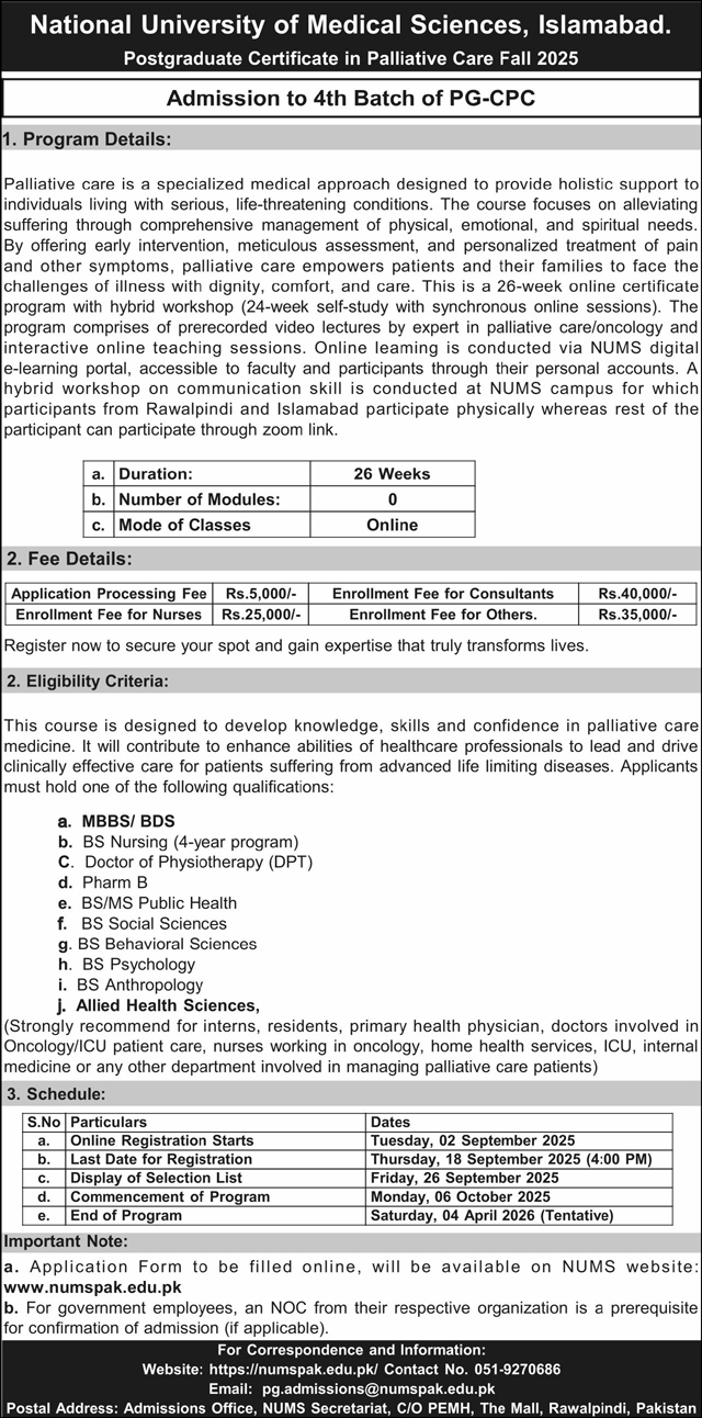Admission open in National University of Medical Sciences Rawalpindi | IndoPakWork