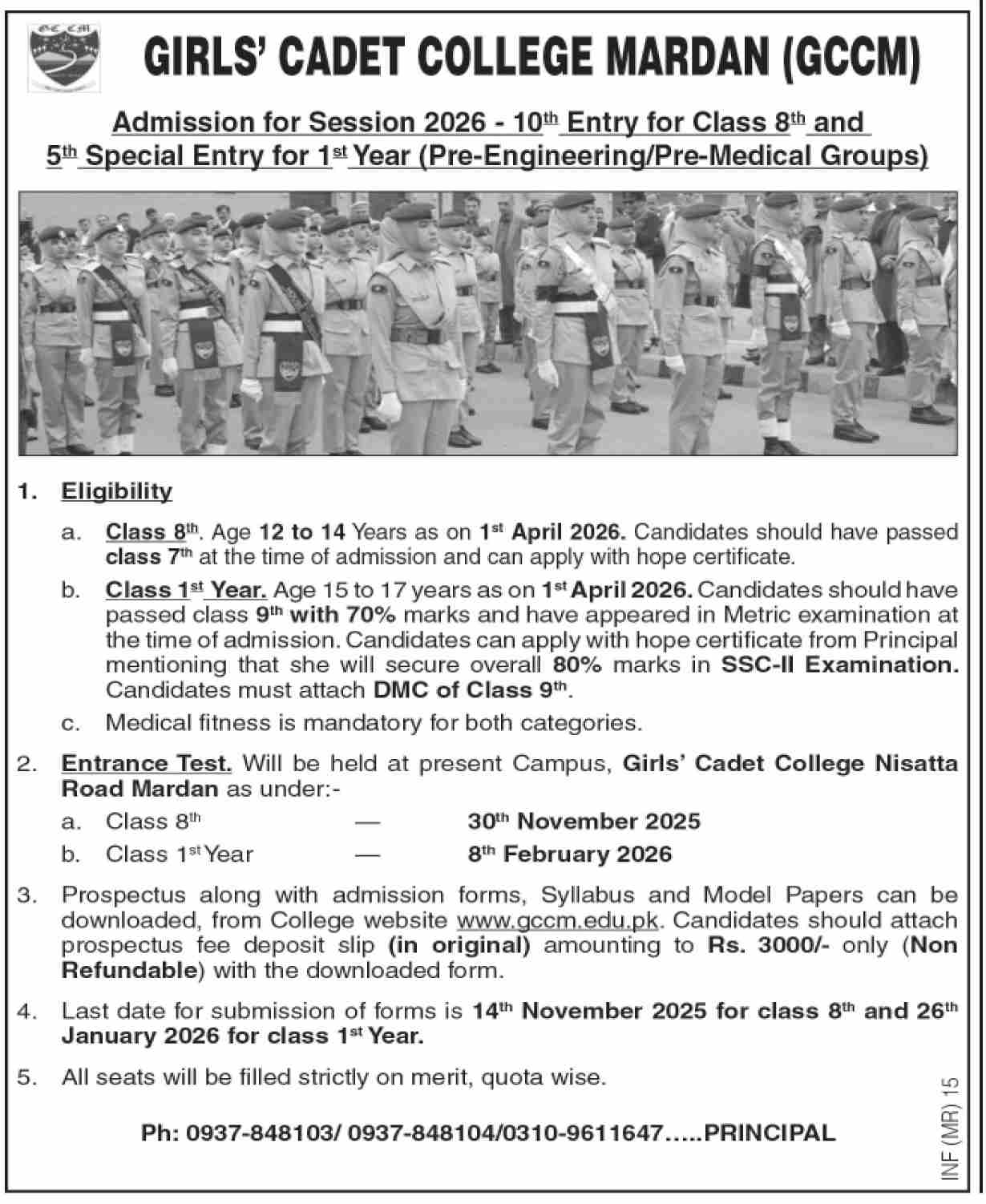 Admission Open in Karnal Sher Khan Cadet College Swabi