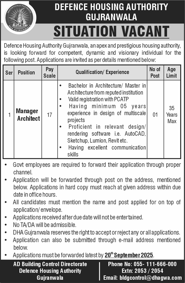 Jobs in Defence Housing Authority Gujranwala