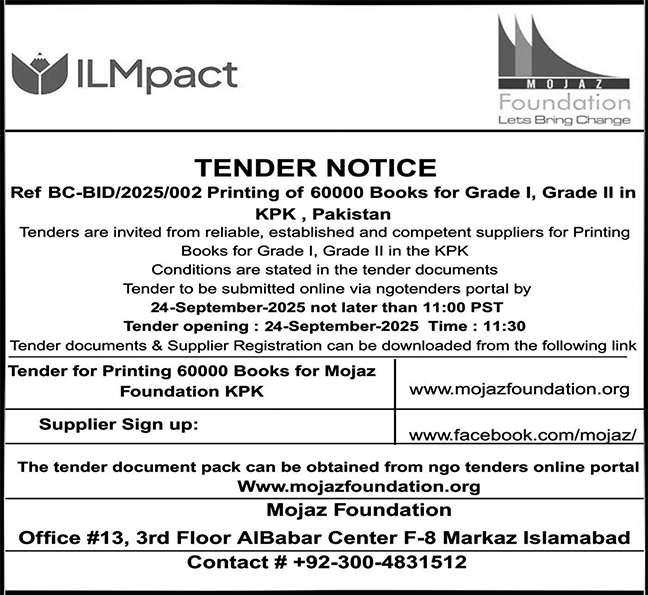 Pakistan Ordnance Factories Wah Cantt Tender Notice