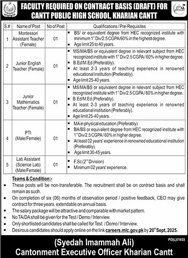 Jobs in Cantt Public High School Kharian