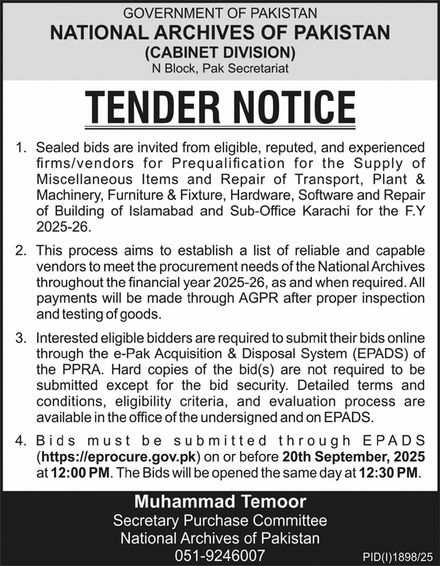The Federation of Pakistan Chambers of Commerce & Industry Tender Notice