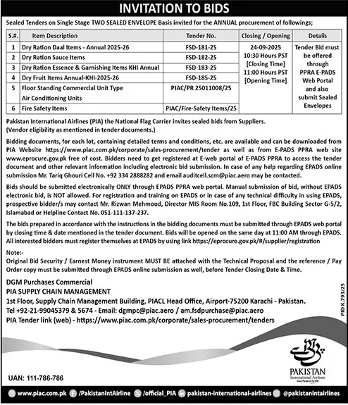 Pakistan International Airlines Karachi Tender Notice