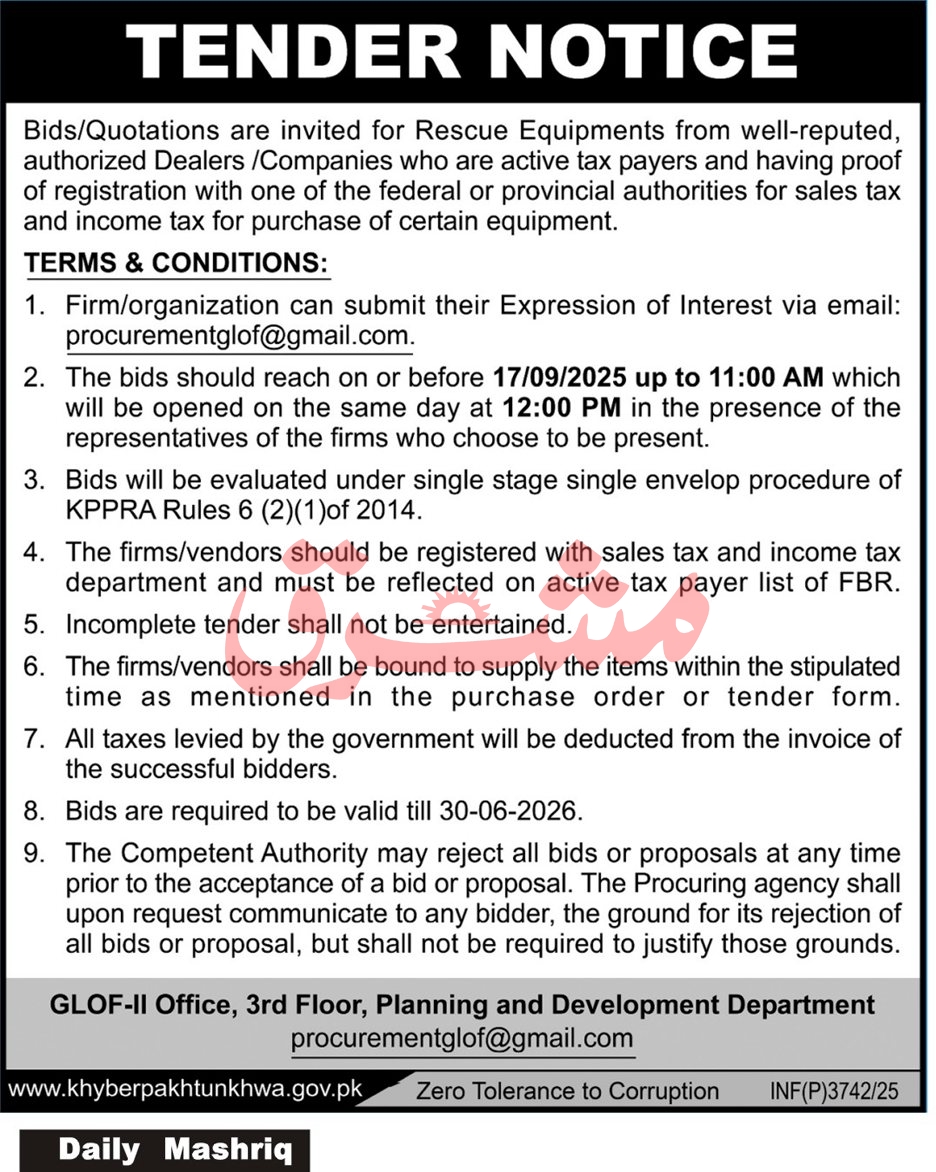 Khyber Pakhtunkhwa Technical Education & Vocational Training Authority Peshawar Tender Notice