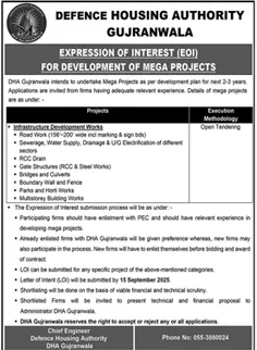 Defence Housing Authority Gujranwala Tender Notice