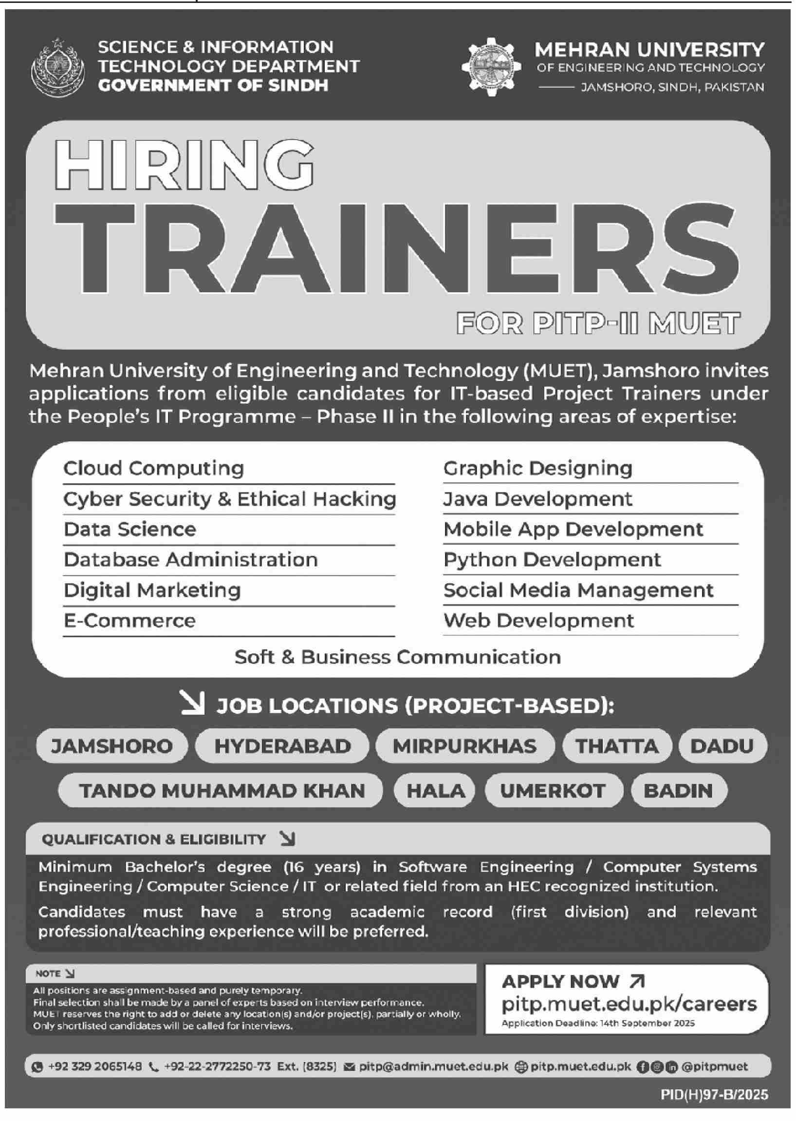 Jobs in Mehran University of Engineering & Technology Jamshoro