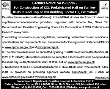 Pakistan Revenue Automation Private Limited Islamabad Tender Notice