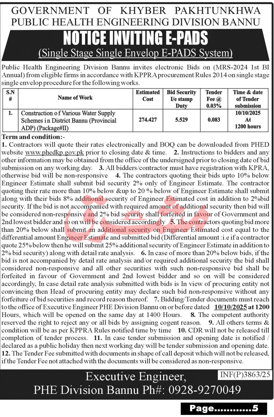 Public Health Engineering Division Bannu Tender Notice-1