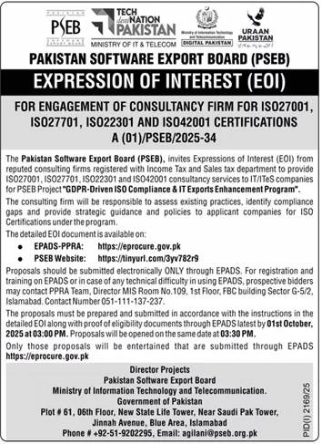Ministry of Information Technology & Telecom Islamabad Tender Notice