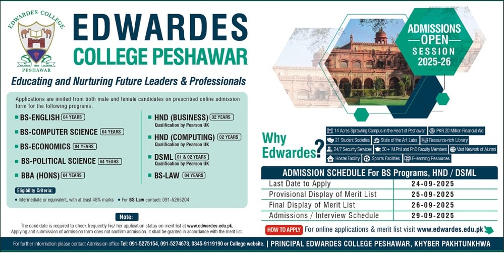 Admission Open in Edwards College Peshawar