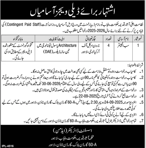 Jobs in Antiquities Department Lahore
