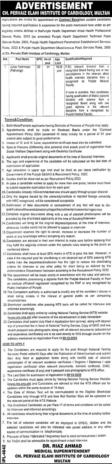 Jobs in Ch Pervaiz Elahi Institute of Cardiology Multan