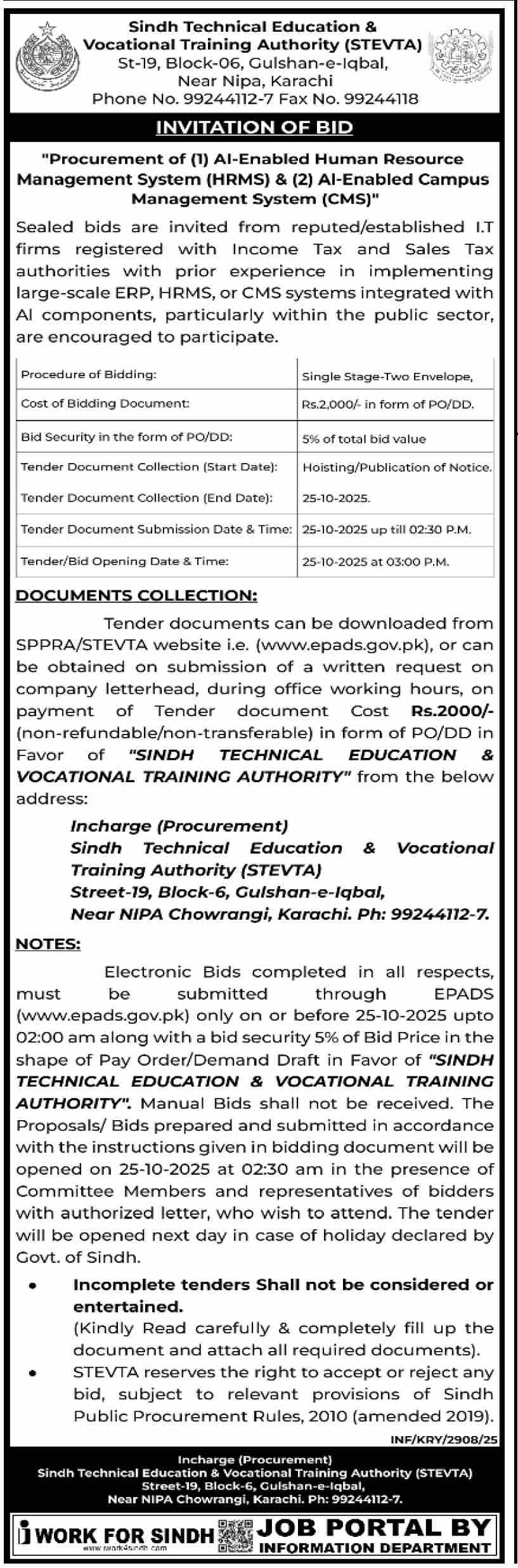 Karachi Development Authority Tender Notice 1